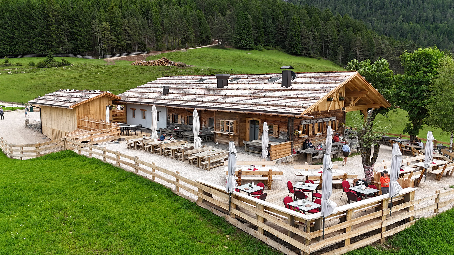The Tuffalm can by reached by foot on trail no. 1, starting at the lake “Völser Weiher (walking time: about 45 minutes) or on the forest road, which is very easily accessible also for elderly people and families with children.